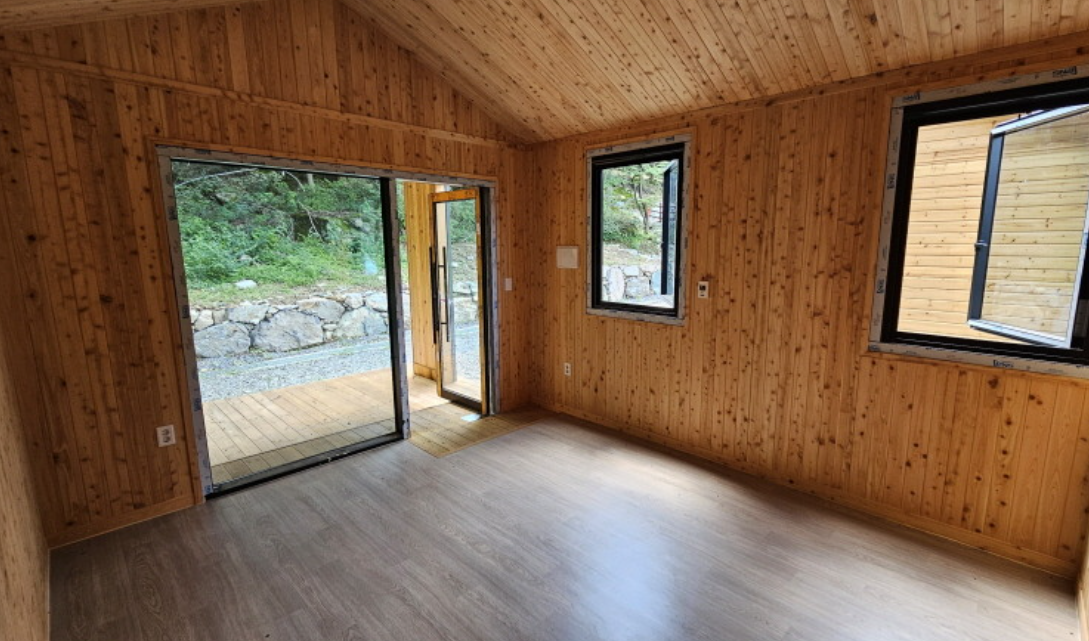 숲 속의 집은 실내숙소로 4인, 6인, 8인, 12인실의 독채건물로 되어 있으며 편의시설로는 TV와 냉장고, 샤워실, 에어컨, 이불장, 전기레인지가 있습니다.